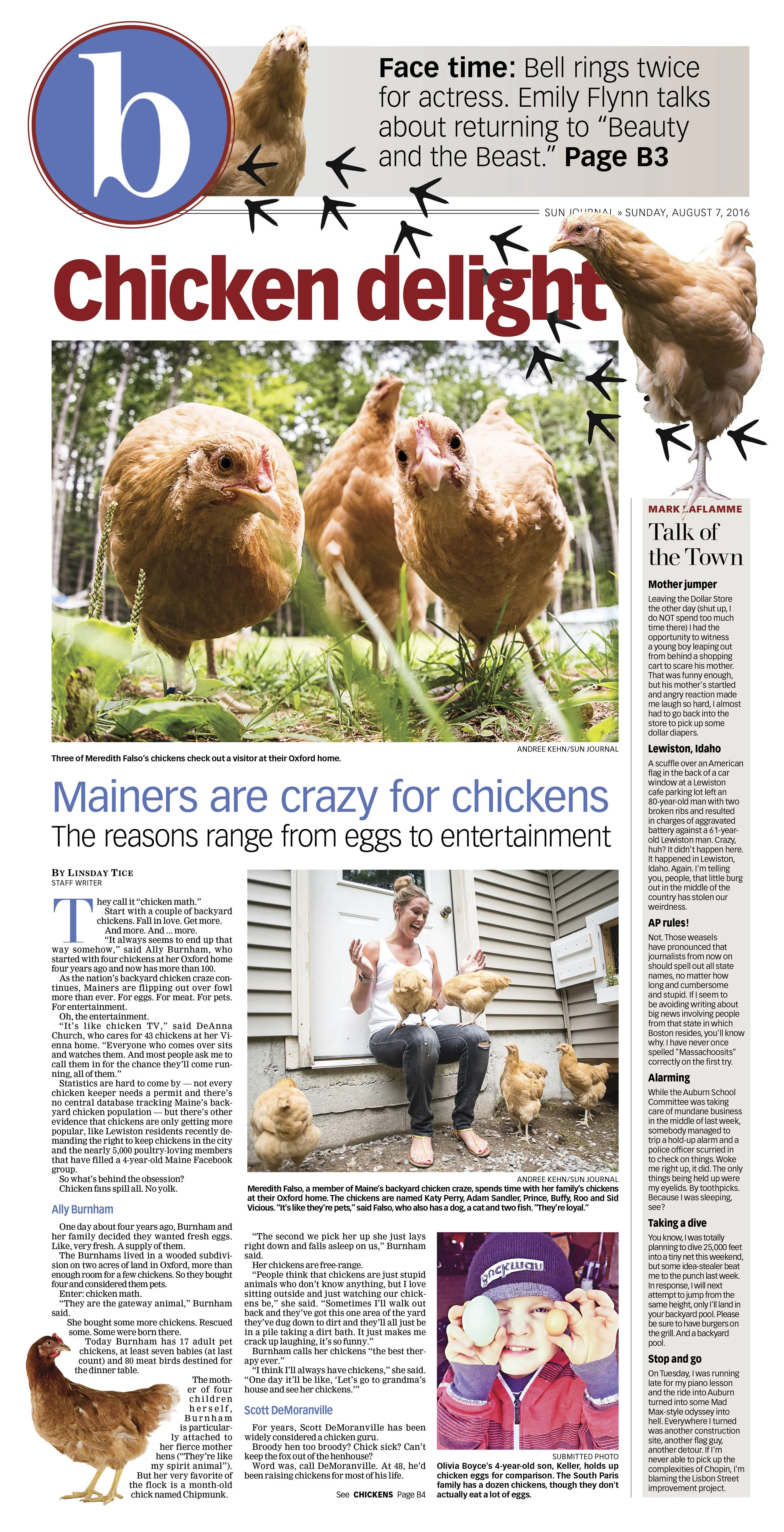 Above: Traditional style newspaper pages from my time working at the Lewiston Sun Journal. Below: A selection of pages from the special section in the Sunday paper known as “B-plus.”