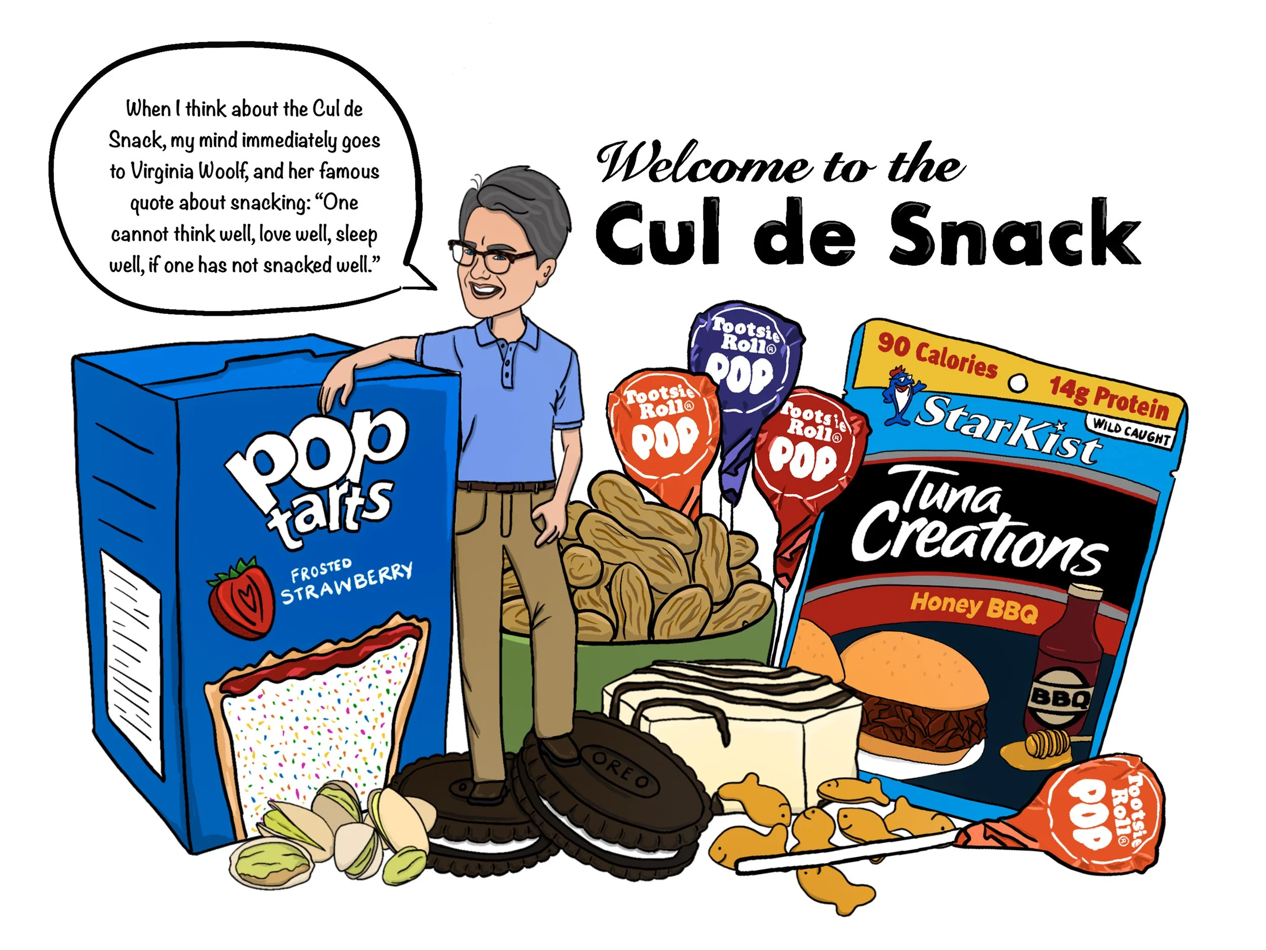 This sign adorns the snack table (affectionately known as the “Cul de Snack” due to its central location) in the Bates College Communications Office.